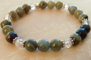 The Labradorite crystals in this bracelet promote magic, transformation, intuition and protection and open up an opportunity to begin a voyage of self discovery. Labradorite is believed to be an extremely protective, mystical stone, a ‘bringer of light’ helping you to raise your consciousness and connect with the energy of the universe. It can bring messages from the unconscious mind to help you break through old negative patterns to open up new ways of thinking and acting.